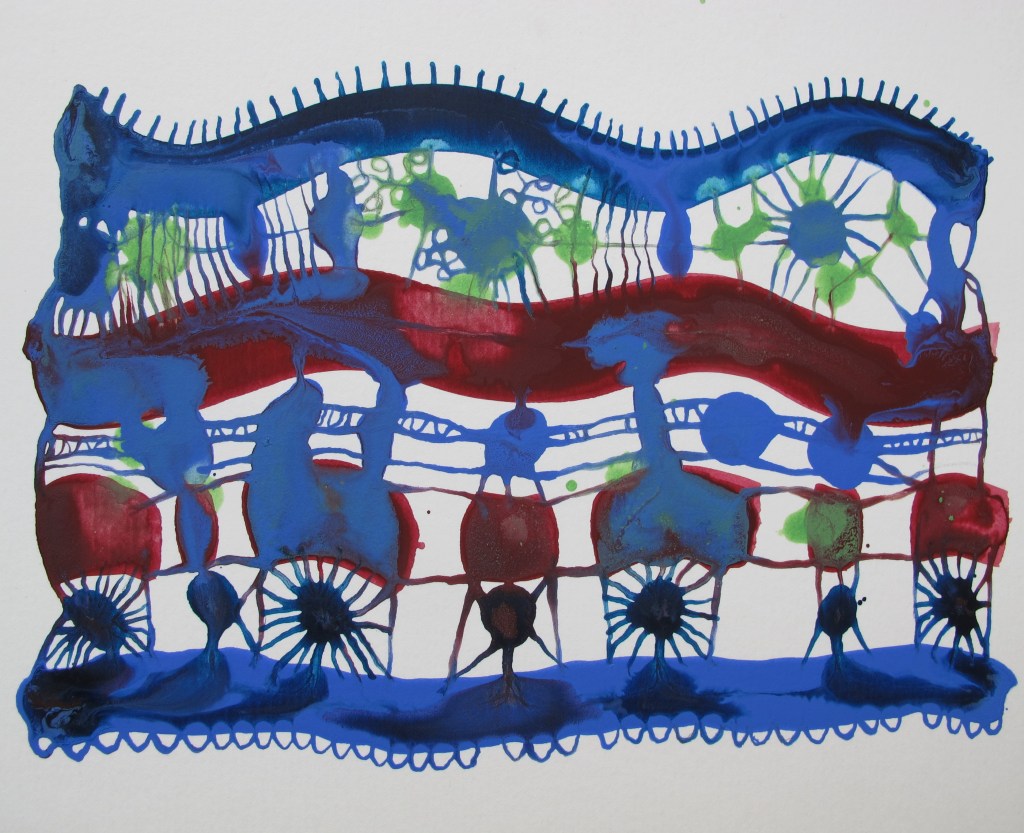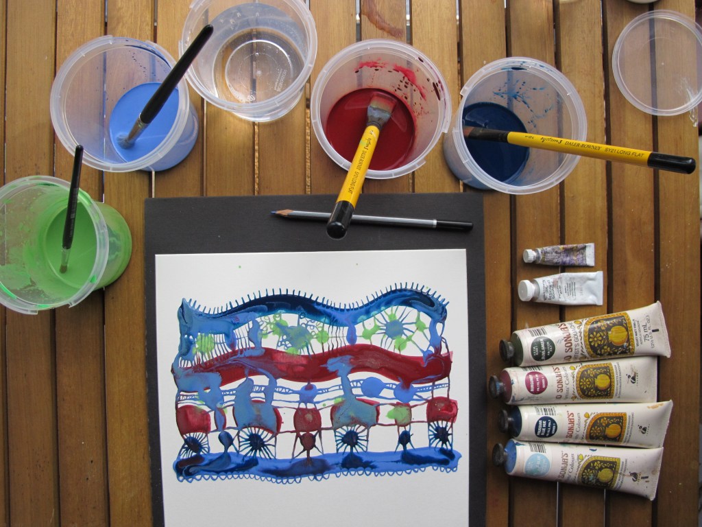 Our Quiet Places for Unquiet Minds project assistant Rebecca MacPherson has been experimenting with doodling in acrylic paint and drawing into it with a pencil to create vibrant patterns.