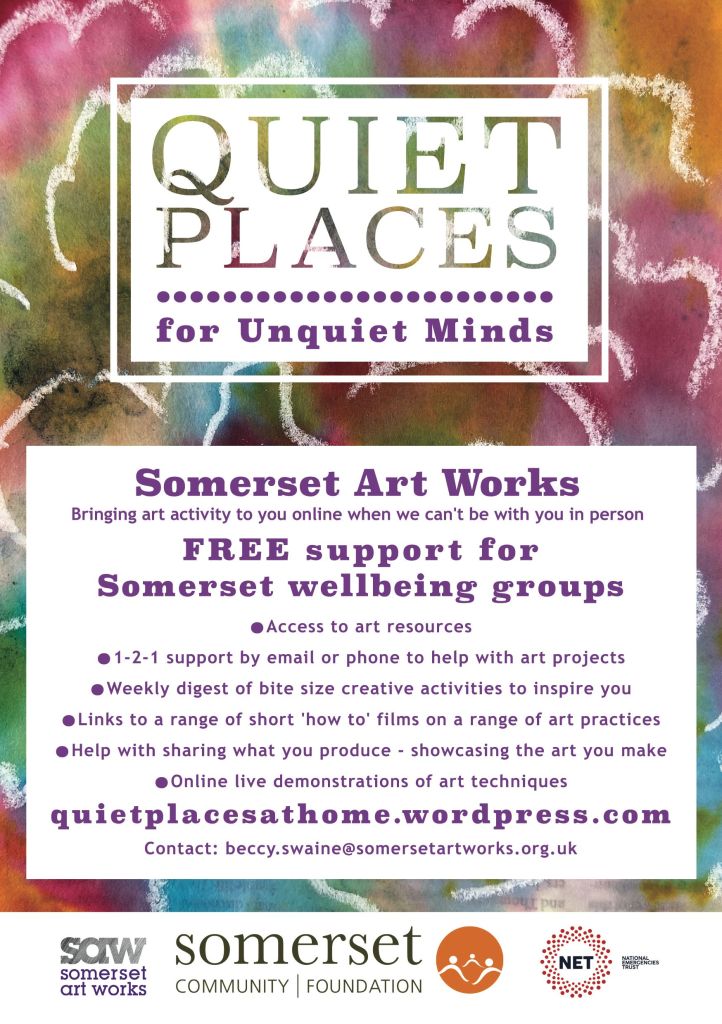 In 2020 Somerset Art Works offered specialist, FREE artist-led advice and resources to wellbeing groups around the county – to encourage and support creative activity for health and wellbeing.
