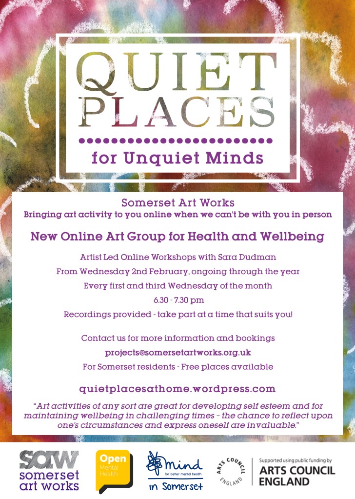 Join us twice a month for Online Artist Led Workshops with Sara Dudman – for Health and Wellbeing.
