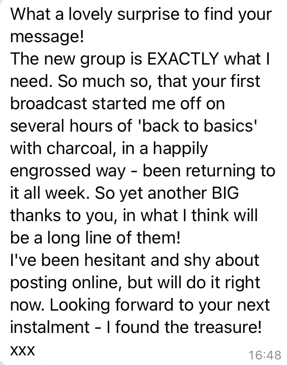 “I am loving leading the practical demonstrations and building this fab online creative community. Since the beginning of Covid, I think we’ve all realised just how important it is to reach out to each other and give and receive support in whatever ways we can. We are so fortunate to have virtual and digital ways of staying connected through art!” Sara Dudman