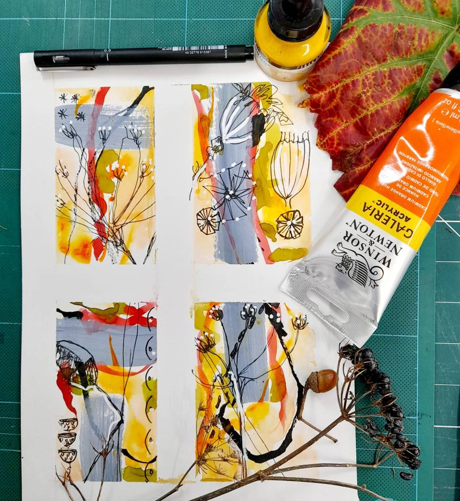 The beginning of October brought with it our exciting first few sessions with new artist Gary Mills over in the Somerset Art Works – Online Art Group. All of Gary’s sessions are loosely themed around sketchbook and journal working – how to make that fun, accessible and how to build a really tangible body of experiments and artwork.