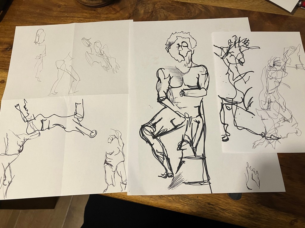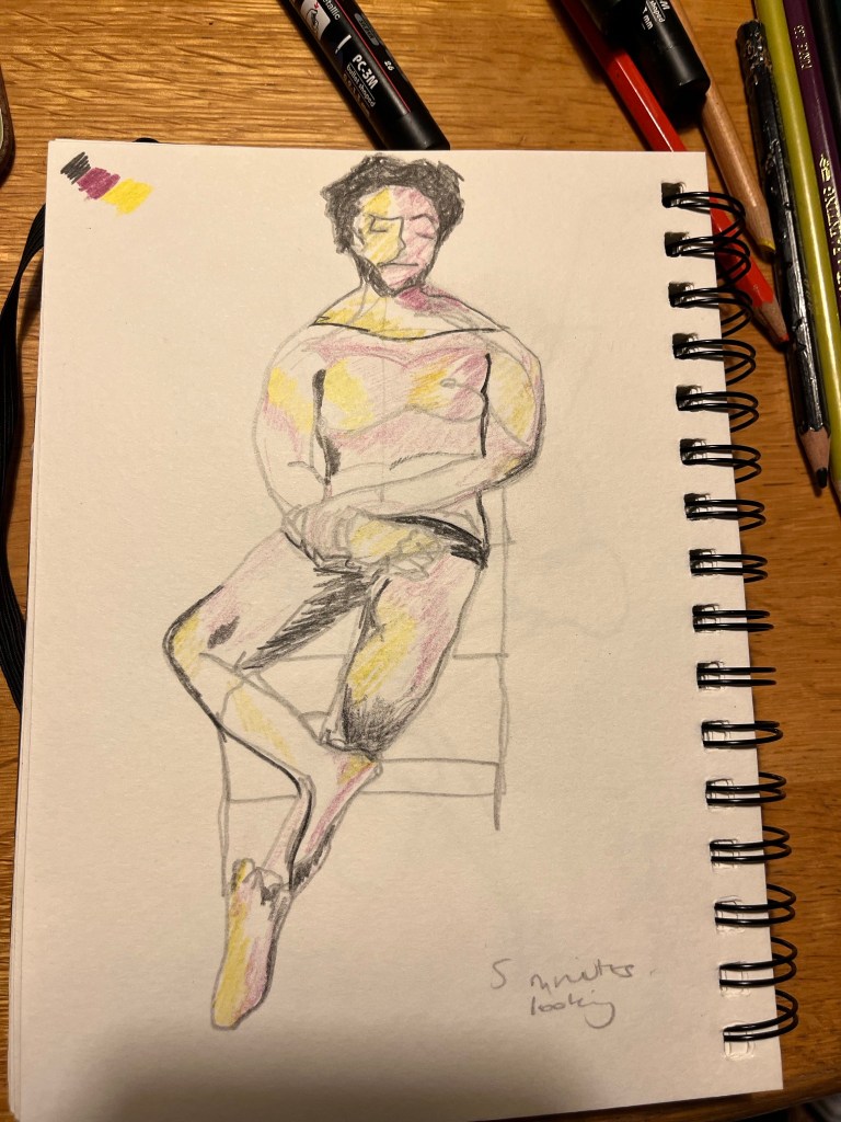 It was such a joyful session, with every single one of us surprising ourselves at how much we liked the results, and how freeing it was to remove reflection and judgement from the drawing process. Gemma’s really helping us become more comfortable with using our sketchbooks for play and action, getting work out onto the page without fear or hesitation.