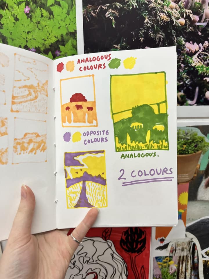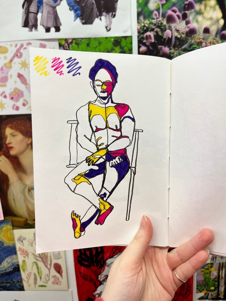 We’ve been having a brilliant time over in the Online Art Group playing with line and colour in Gemma Dunnell’s sketchbooking sessions. We had to leave all our expectations and inhibitions at the door as Gemma walked us through the idea of blind and continuous line drawings. Using a series of reference images, we let our thinking minds have a break whilst our eyes and hands did the work.