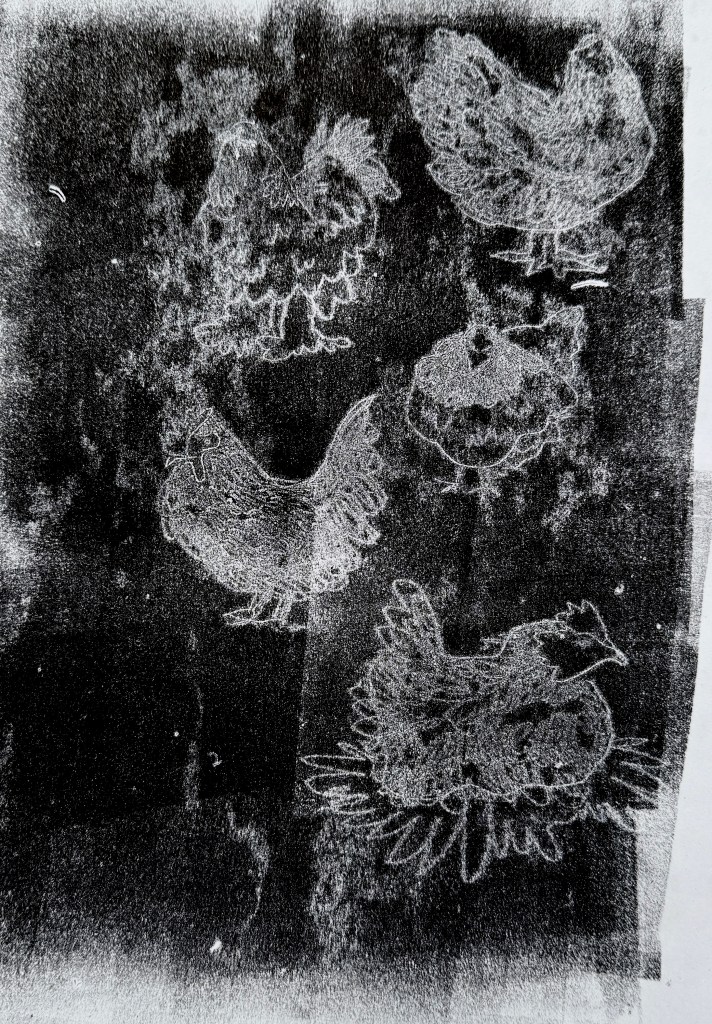 16 April Session 3: Monotype printing – wipeaway printing. This technique has been used by artists such as Degas to create these ethereal and moody images and landscapes.