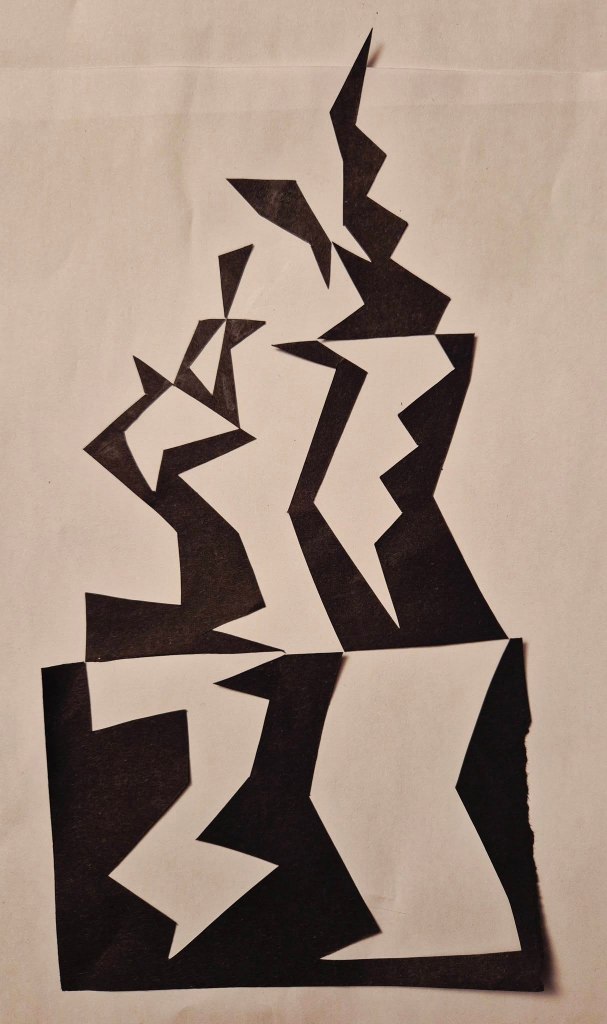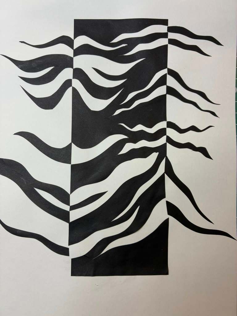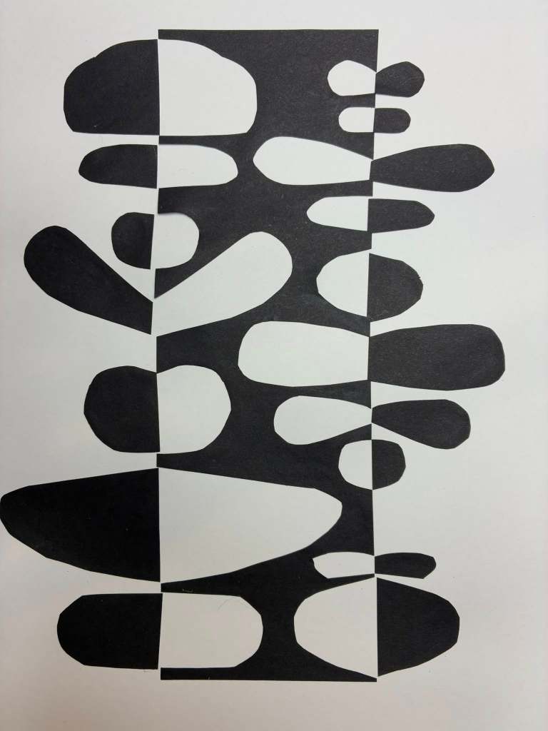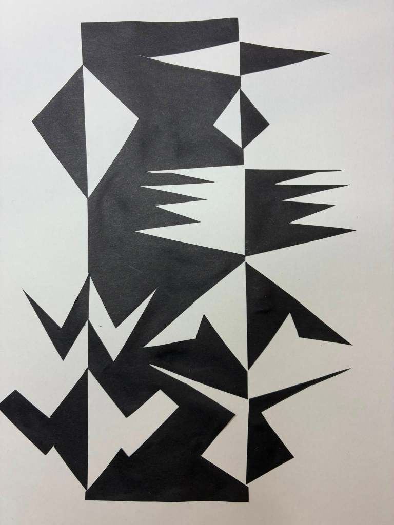 To round things off one of our brilliant participants introduced us to the concept of Notan Art – “a design concept meaning “light-dark harmony,” focusing on the balance between positive (light) and negative (dark) space, often created using paper-cutting techniques” – a perfect reflection of what we’ve been working on.